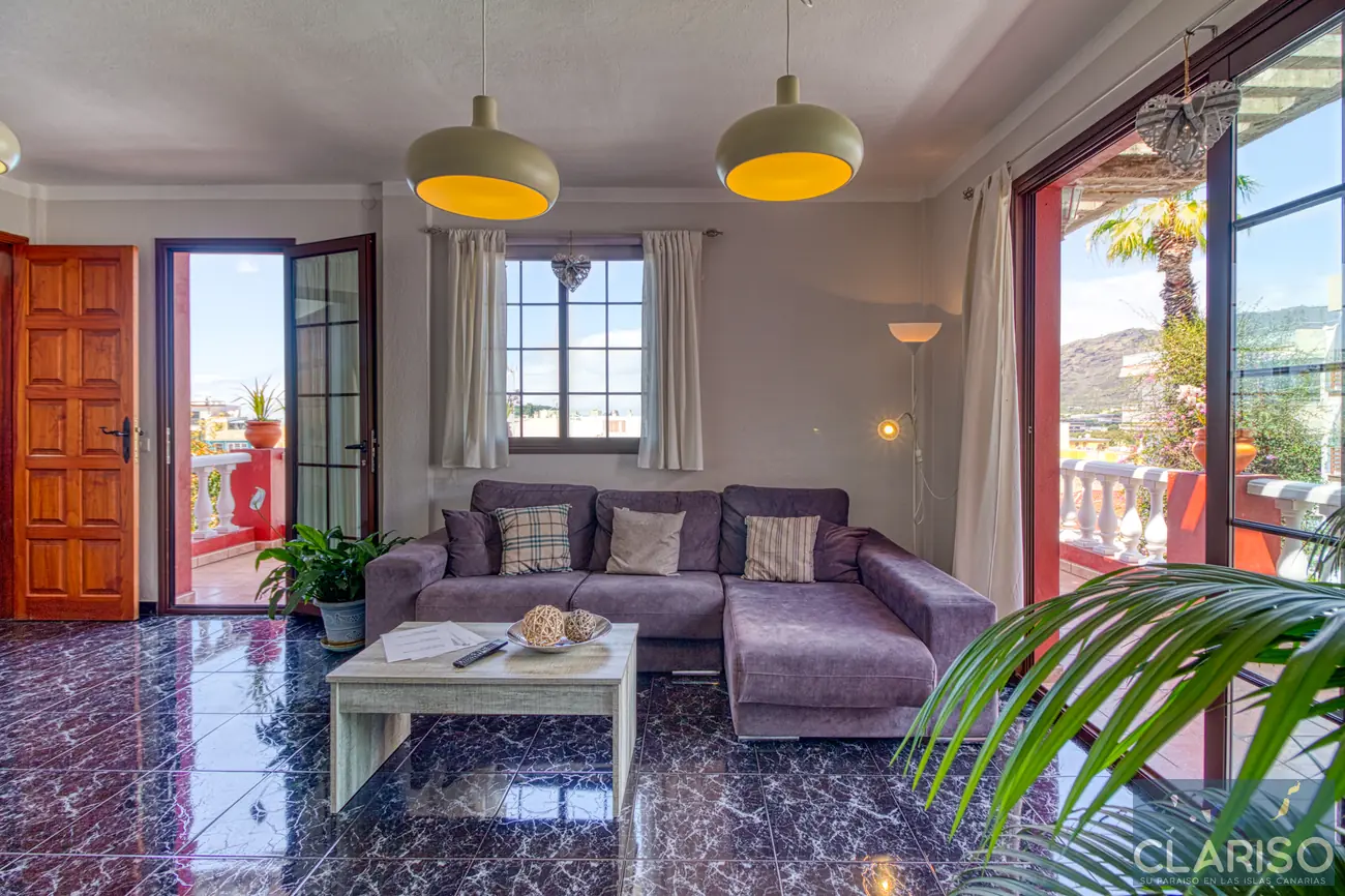 Besonders angenehm ist der Zugang zur umlaufenden Terrasse mit Sitzmöglichkeiten, die sich über zwei Seiten des Apartments erstreckt. Von hier aus genießen Sie einen schönen Blick auf die Umgebung und die Stadt. Auch vom Innenbereich bietet sich ein weiter Blick in die Berge, der dem Wohnraum eine besondere Atmosphäre verleiht.