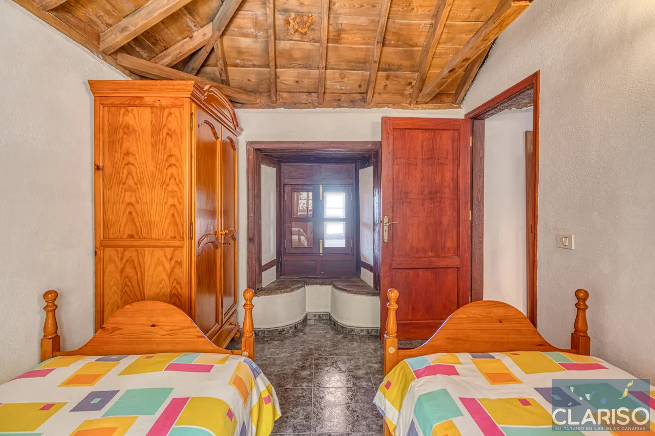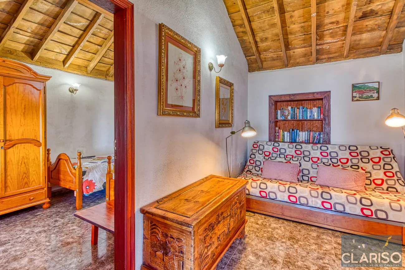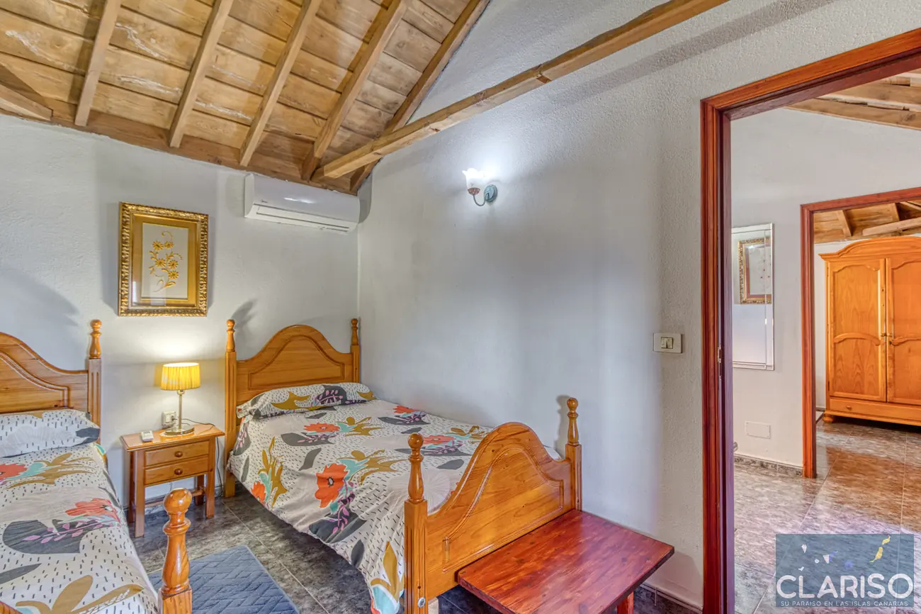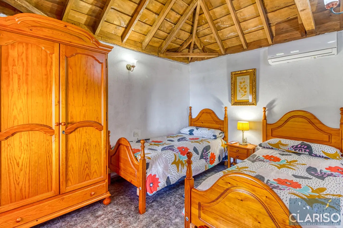 La Casa Lorenzo dispone de dos dormitorios equivalentes, ambos equipados con camas individuales y aire acondicionado. Entre los dos dormitorios se encuentra una sala de lectura independiente con sofá cama, que puede utilizarse como espacio adicional para dormir. Esta zona es ideal para familias o pequeños grupos, teniendo en cuenta que las estancias están conectadas entre sí y en parte se atraviesan.