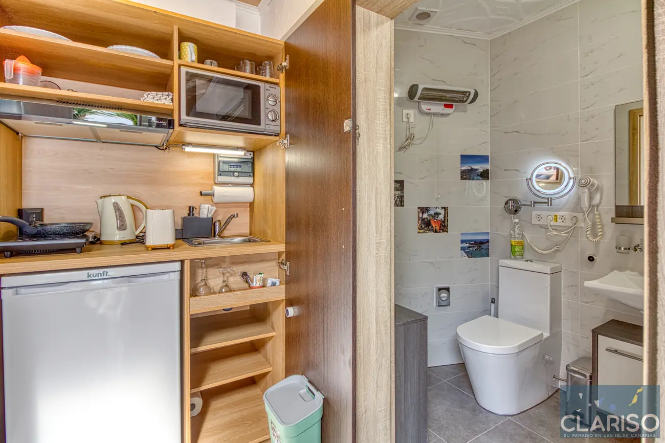 A bright and modern double room with light dome, kitchenette and terrace – ideal for couples or solo travelers seeking comfort and calm. Thanks to the connection to Los Piratas 3, it’s also perfect for families or friends.