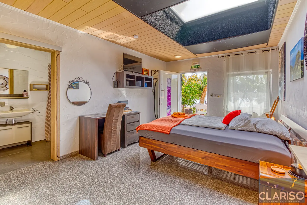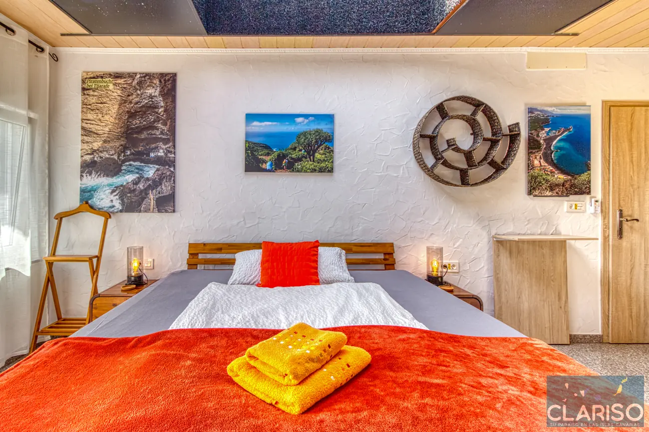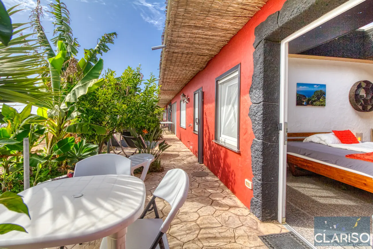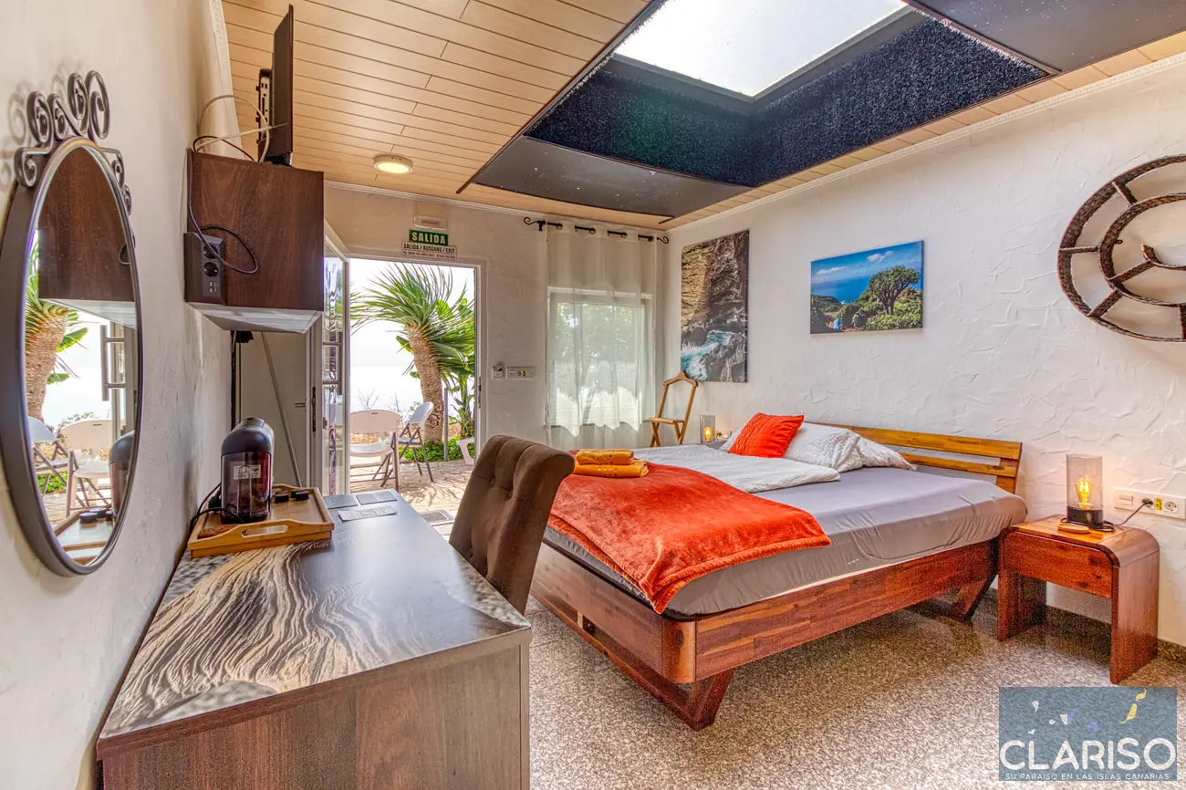 The double room belongs to the idyllic Hotel Rural Los Piratas, offering a shared pool, a romantic fishing boat, tropical garden and peaceful surroundings – perfect for nature and tranquility lovers.