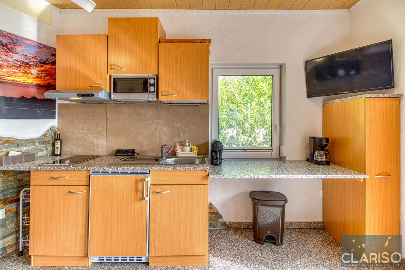 – Kitchenette fonctionnelle (plaque, micro-ondes, réfrigérateur, presse-agrumes, vaisselle, verres, couverts)
