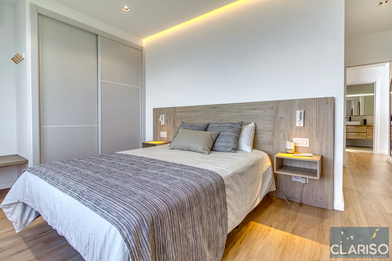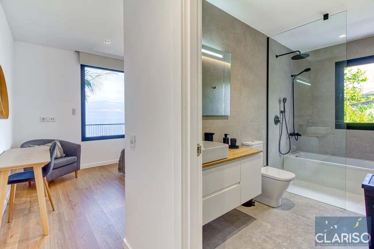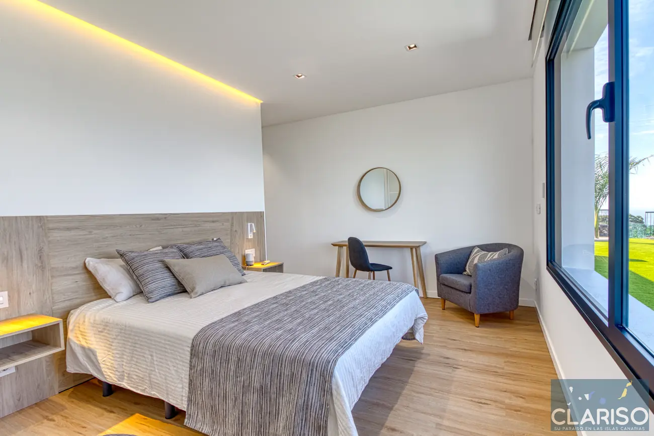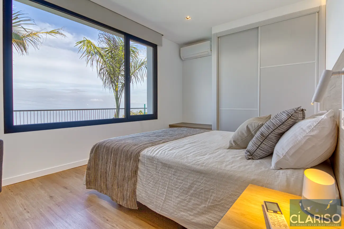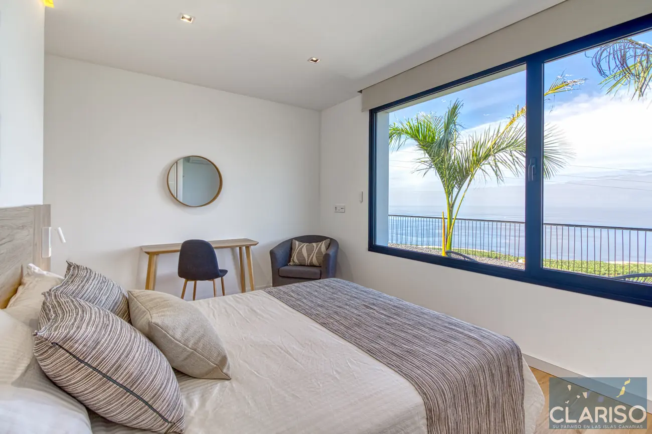 De hoofdslaapkamer biedt rust en privacy dankzij een aparte ingang. Hier bevindt zich een privé badkamer met whirlpool-bad en inloopdouche. De slaapkamer is ingericht met een comfortabel tweepersoonsbed, kledingkast, bureau, fauteuil en airconditioning. Door het grote raam heeft men direct zeezicht – perfect om de zonsondergang boven de Atlantische Oceaan te bewonderen.