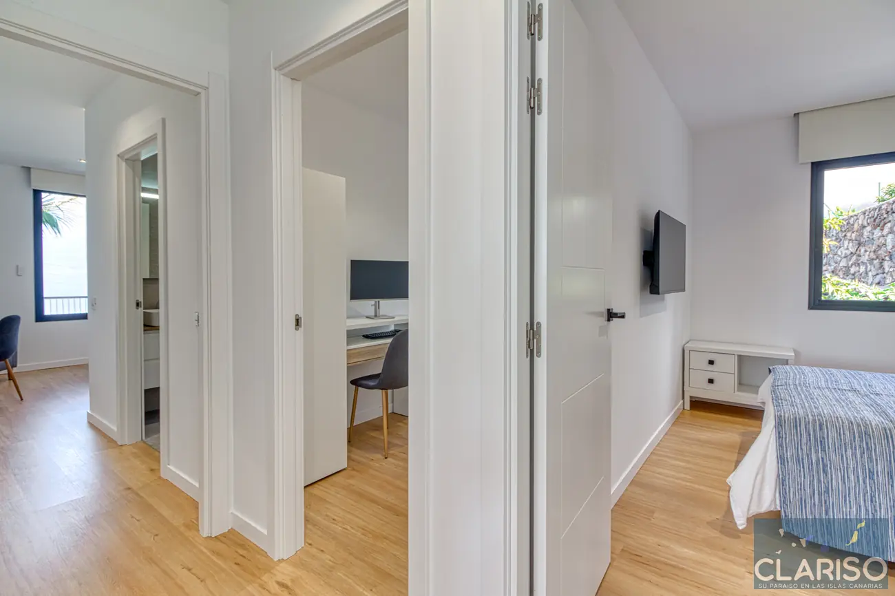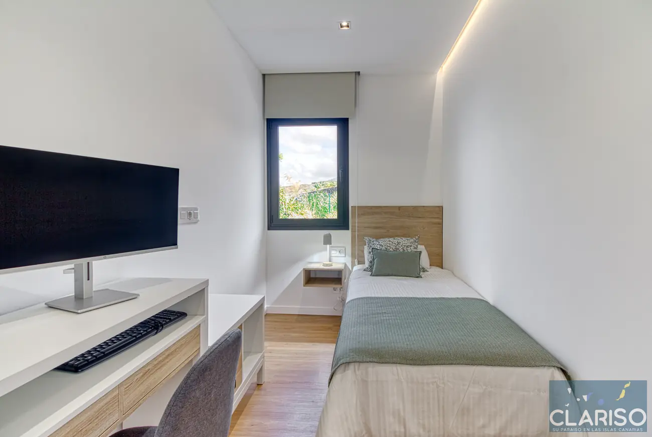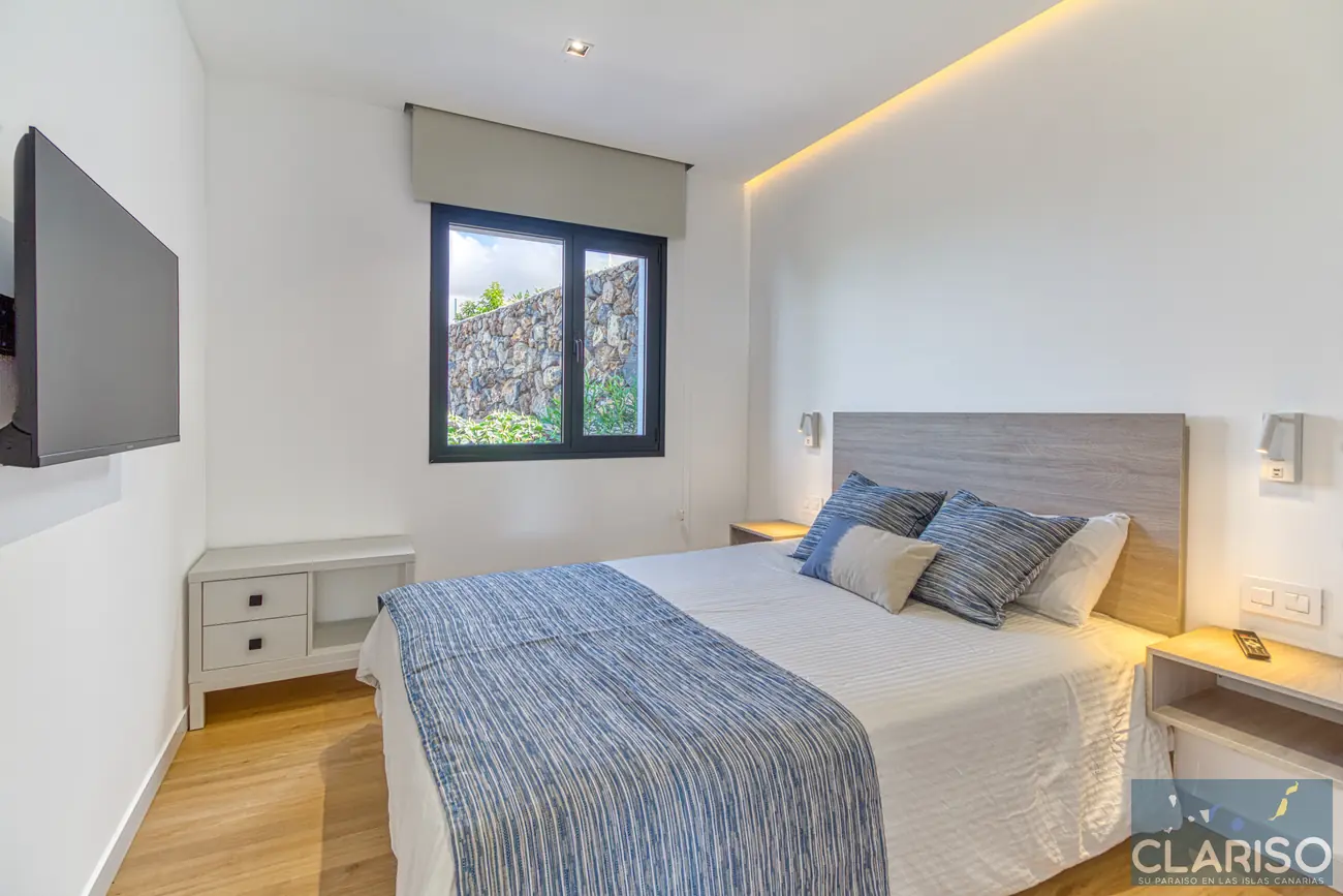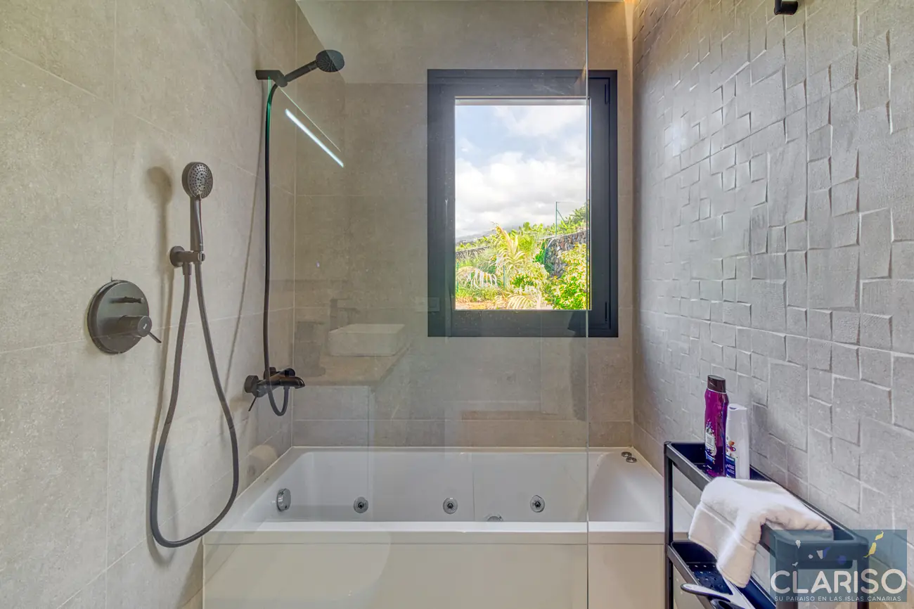 De hoofdslaapkamer biedt rust en privacy dankzij een aparte ingang. Hier bevindt zich een privé badkamer met whirlpool-bad en inloopdouche. De slaapkamer is ingericht met een comfortabel tweepersoonsbed, kledingkast, bureau, fauteuil en airconditioning. Door het grote raam heeft men direct zeezicht – perfect om de zonsondergang boven de Atlantische Oceaan te bewonderen.