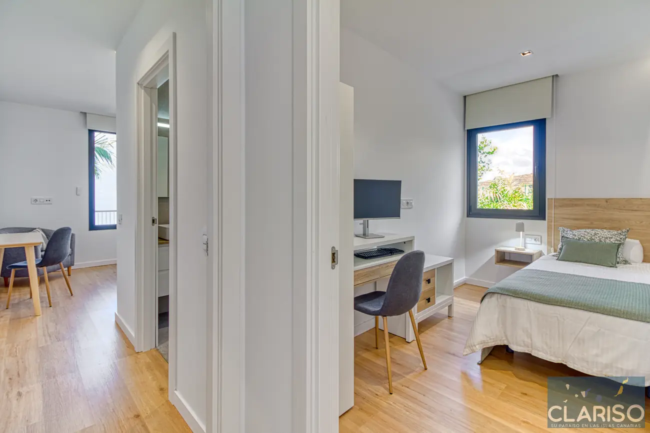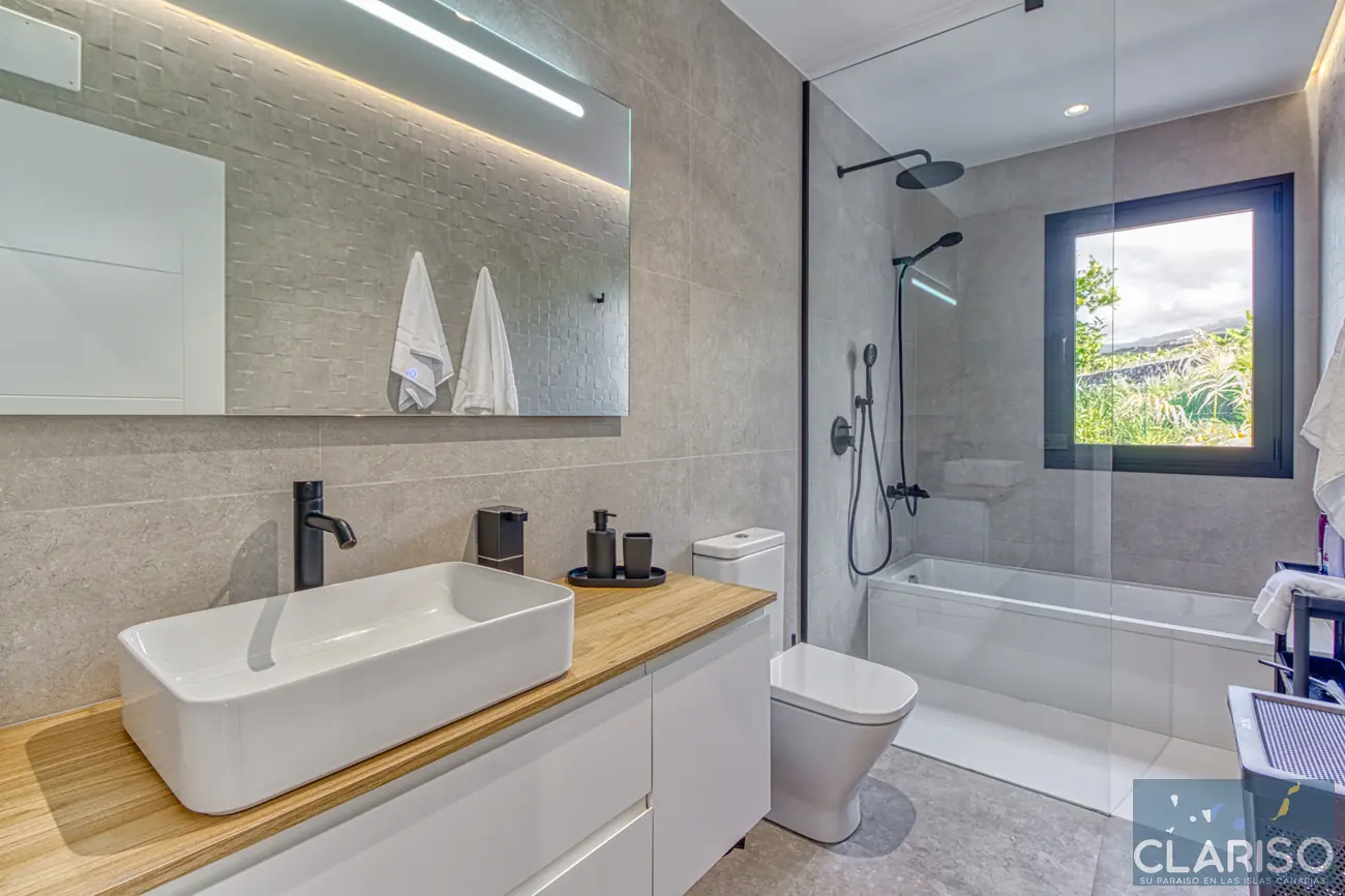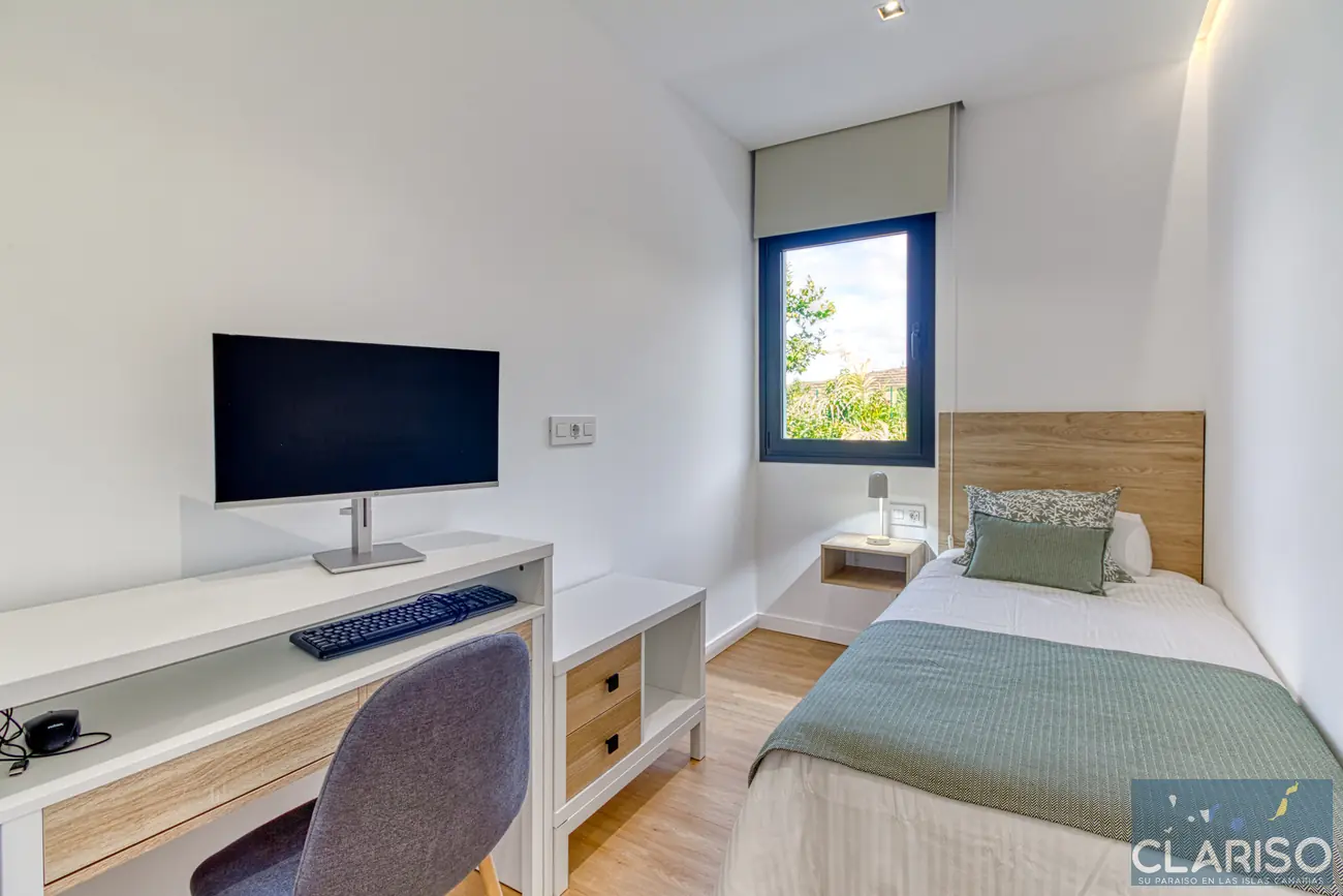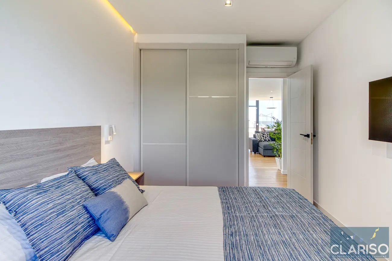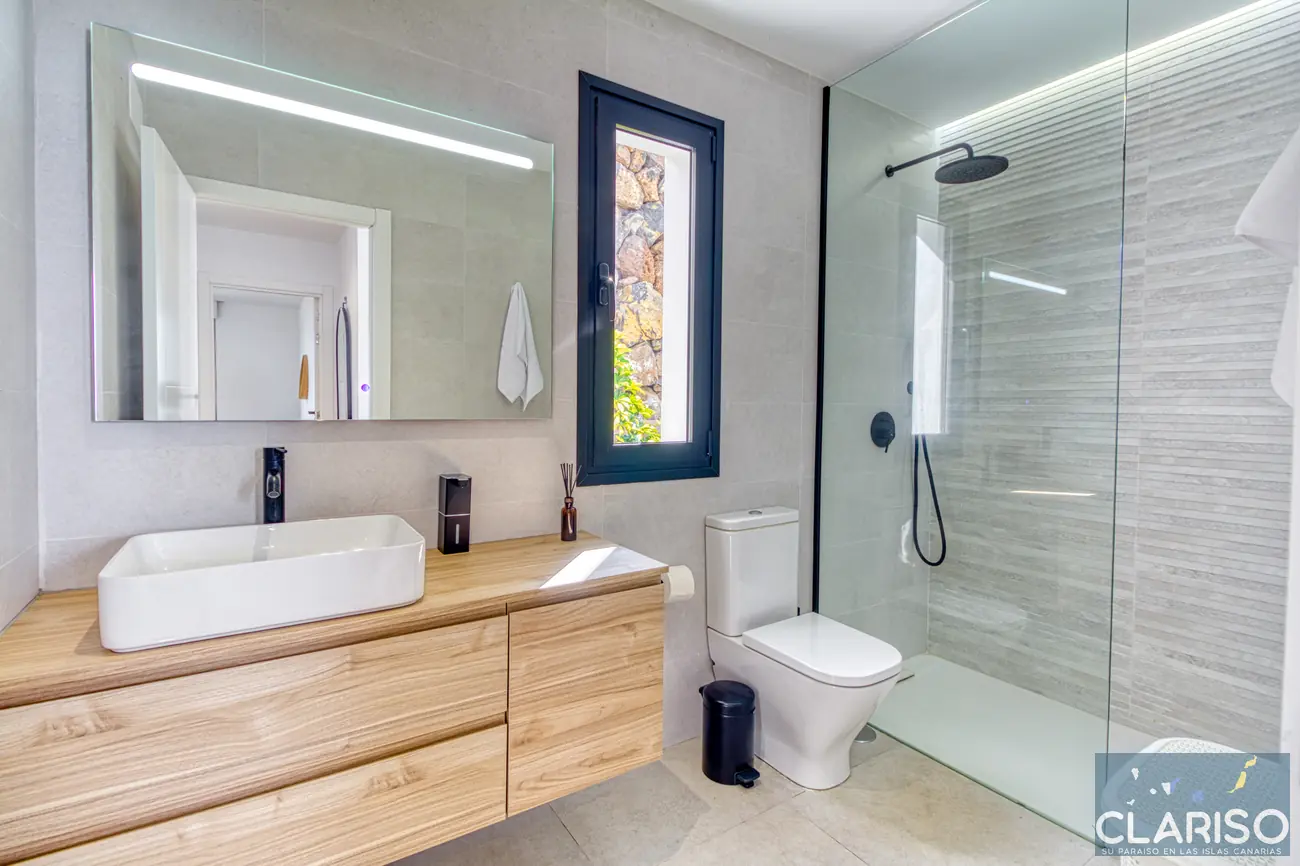 De hoofdslaapkamer biedt rust en privacy dankzij een aparte ingang. Hier bevindt zich een privé badkamer met whirlpool-bad en inloopdouche. De slaapkamer is ingericht met een comfortabel tweepersoonsbed, kledingkast, bureau, fauteuil en airconditioning. Door het grote raam heeft men direct zeezicht – perfect om de zonsondergang boven de Atlantische Oceaan te bewonderen.