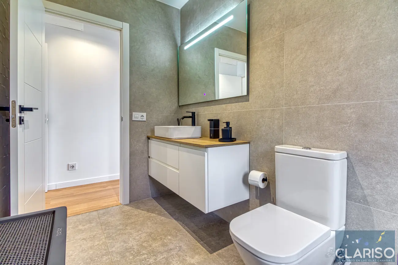 De laminaatvloer in woon- en slaapgedeelten zorgt voor een warme uitstraling, terwijl de keuken en badkamers zijn afgewerkt met moderne tegels. Licht, hout en strakke lijnen creëren een frisse en uitnodigende sfeer.