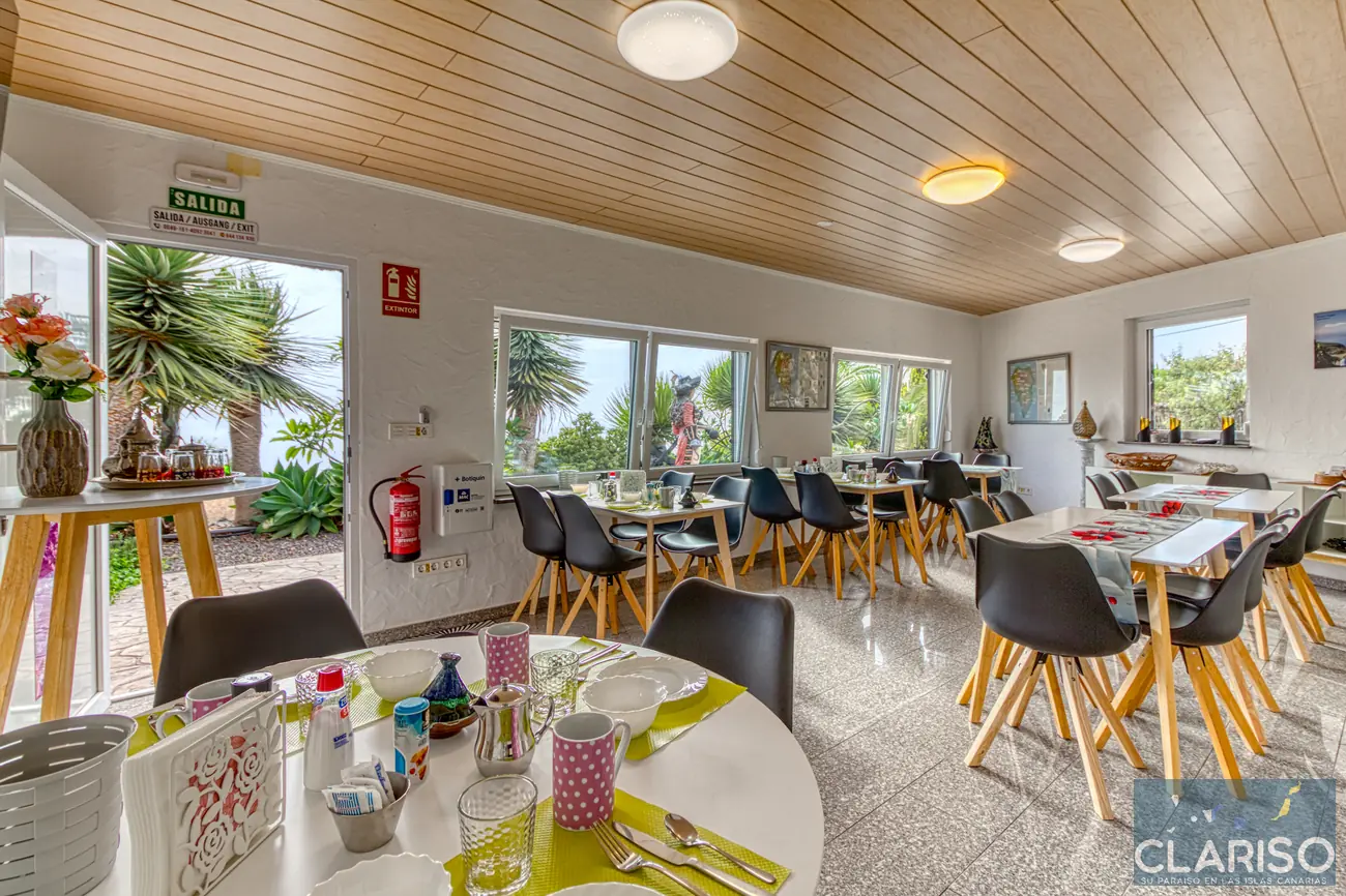 Alle gasten kunnen gebruikmaken van de gemeenschappelijke ruimtes van het complex: zwembad, skywalk, ontbijtruimte, jacuzzi’s, privé-parkeergelegenheid en snelle wifi. De ligging is rustig maar centraal – wandelpaden, Tijarafe en Tazacorte zijn snel bereikbaar.