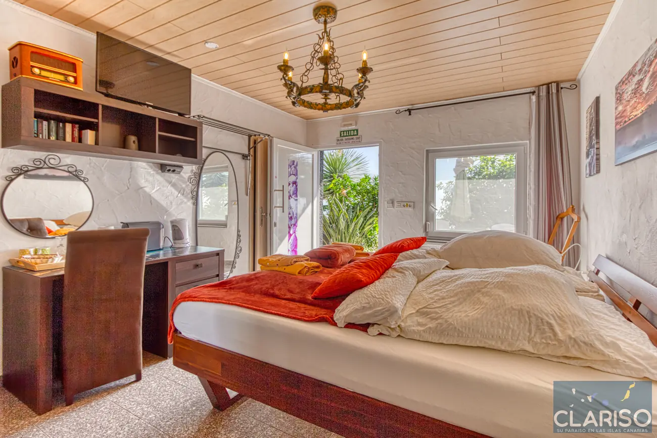Hotel Rural Los Piratas 2 ligt in het middelste gebouw van het charmante complex in Tijarafe, wijk Arecida, op ongeveer 620 m hoogte aan de westkant van La Palma. De stijlvolle tweepersoonskamer maakt deel uit van het idyllische Hotel Rural Los Piratas met gemeenschappelijk zwembad, tropische tuin en rustige natuurlijke omgeving – ideaal voor rustzoekers, natuurliefhebbers en wandelaars.