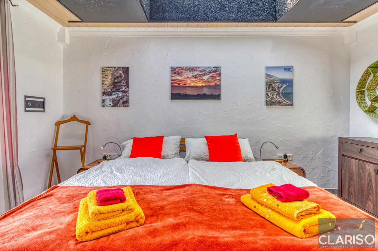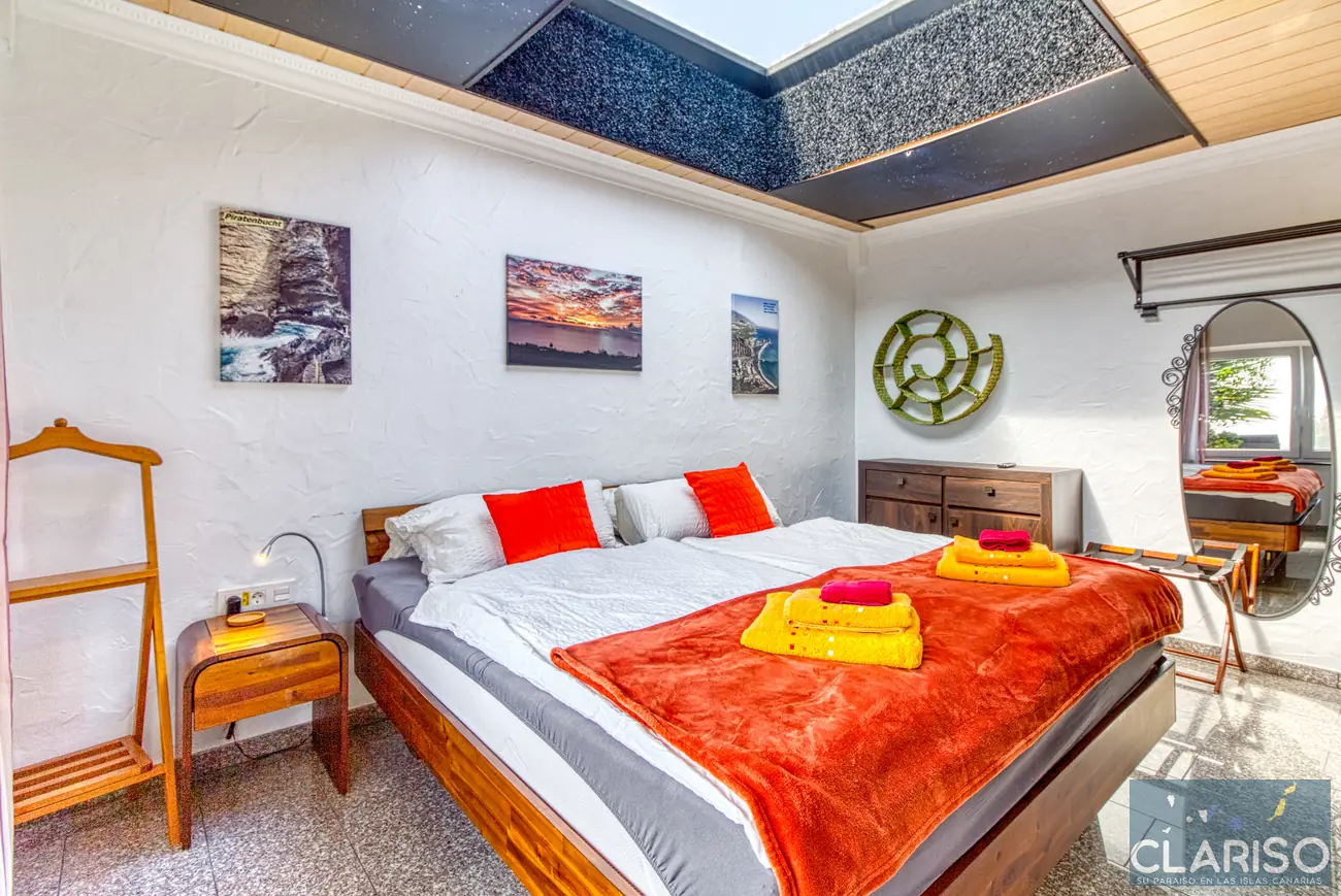 Het appartement biedt ongeveer 65 m² aan ruimte en comfort voor maximaal 3 personen. De hoofdslaapkamer beschikt over een comfortabel tweepersoonsbed, een ruime kledingkast, bureau met stoel, kluis, tv en airconditioning. Een bijzonder hoogtepunt is de 3 m² grote lichtkoepel in het plafond, die geopend of gesloten kan worden en ’s nachts uitzicht biedt op de sterrenhemel.