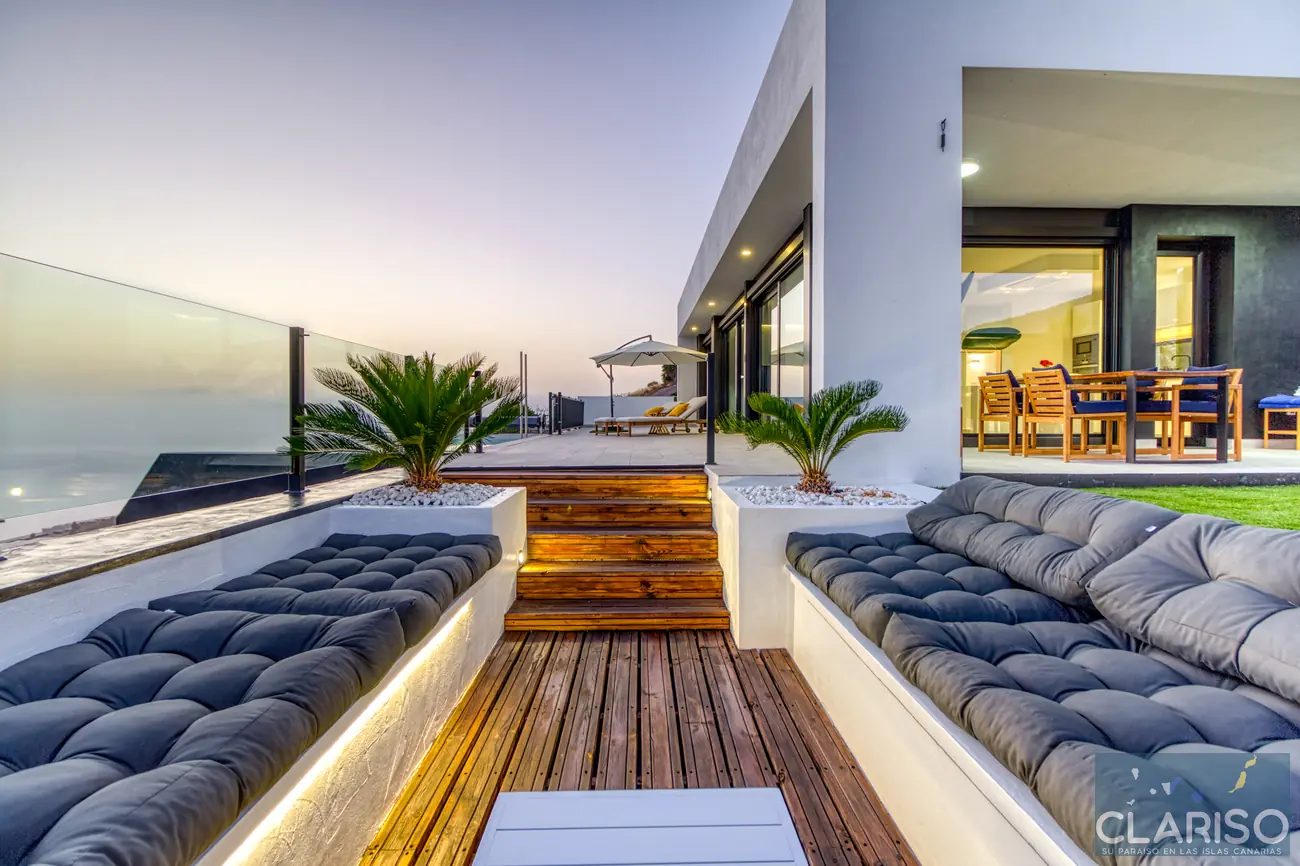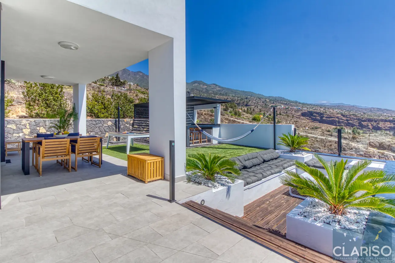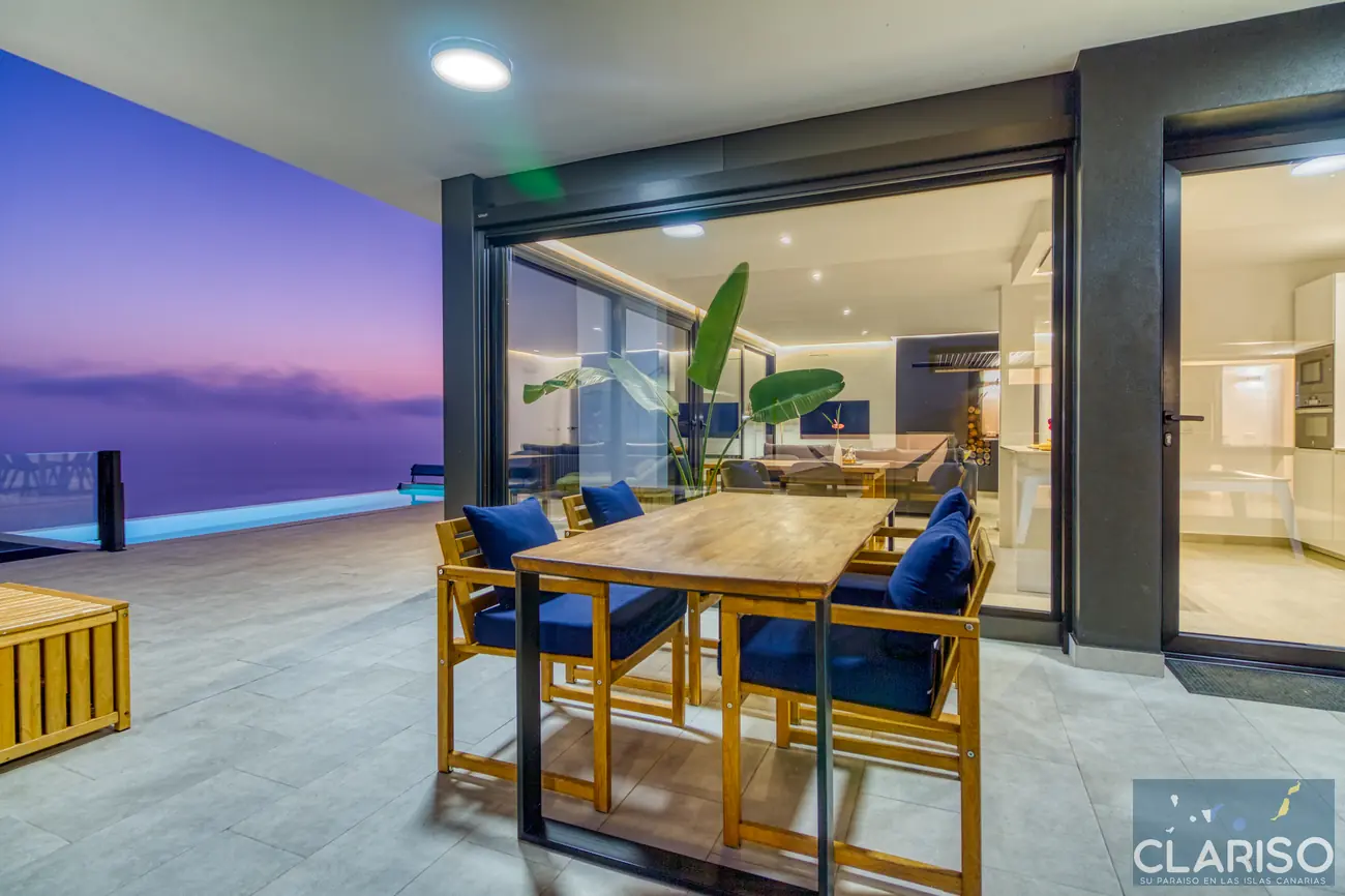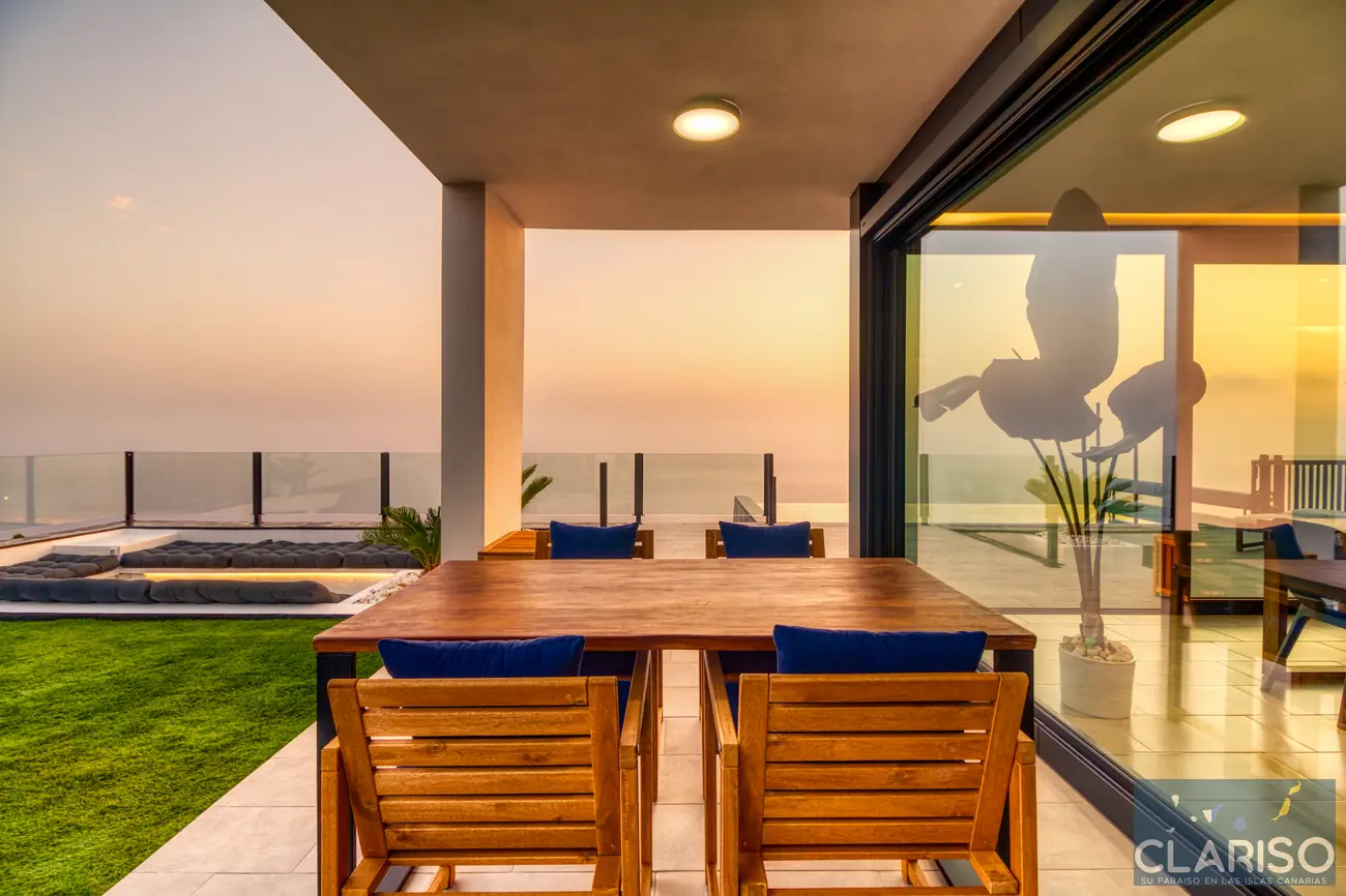 De barbecuehoek met buitenkeuken en bar nodigt uit tot lange, gezellige avonden. Een wijnkoelkast (tegen betaling) houdt zorgvuldig geselecteerde wijnen gekoeld, terwijl je aan tafel uitkijkt over de barranco en het zuiden van het eiland. De overdekte veranda biedt nog een idyllische zit- of eethoek. De buitenruimte wordt aangevuld met een buitendouche, een biljarttafel, privéparkeerplaatsen direct bij het huis, snel wifi en een duurzame stroomvoorziening via zonnepanelen.