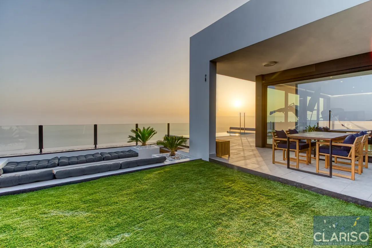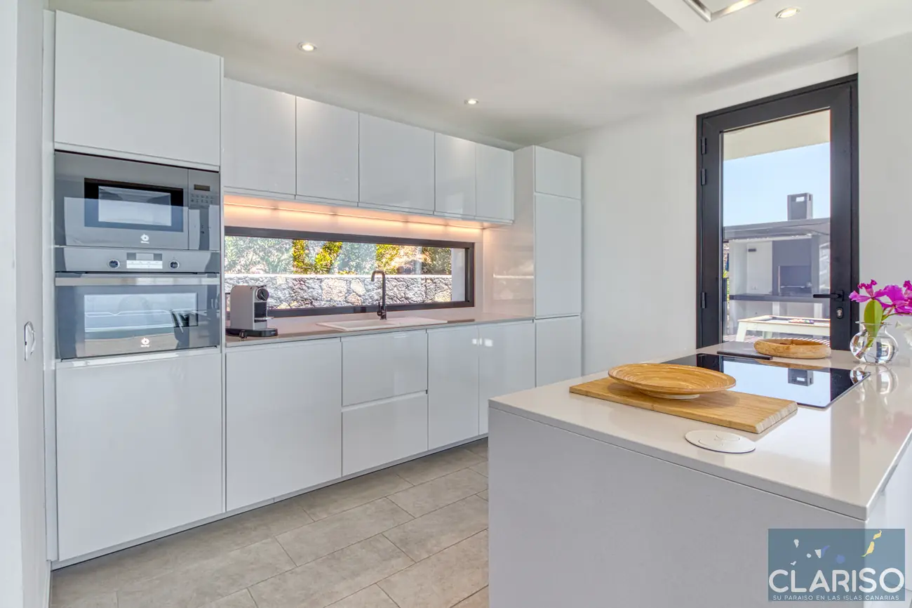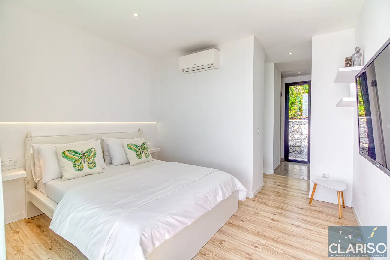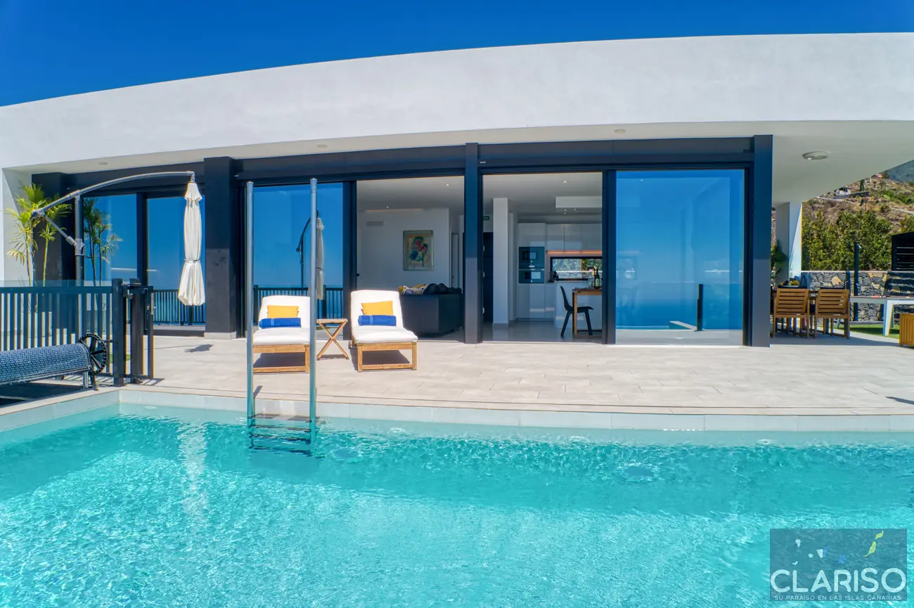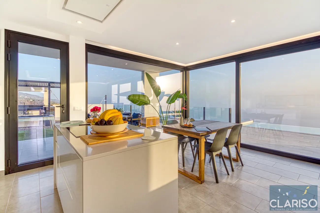 De barbecuehoek met buitenkeuken en bar nodigt uit tot lange, gezellige avonden. Een wijnkoelkast (tegen betaling) houdt zorgvuldig geselecteerde wijnen gekoeld, terwijl je aan tafel uitkijkt over de barranco en het zuiden van het eiland. De overdekte veranda biedt nog een idyllische zit- of eethoek. De buitenruimte wordt aangevuld met een buitendouche, een biljarttafel, privéparkeerplaatsen direct bij het huis, snel wifi en een duurzame stroomvoorziening via zonnepanelen.