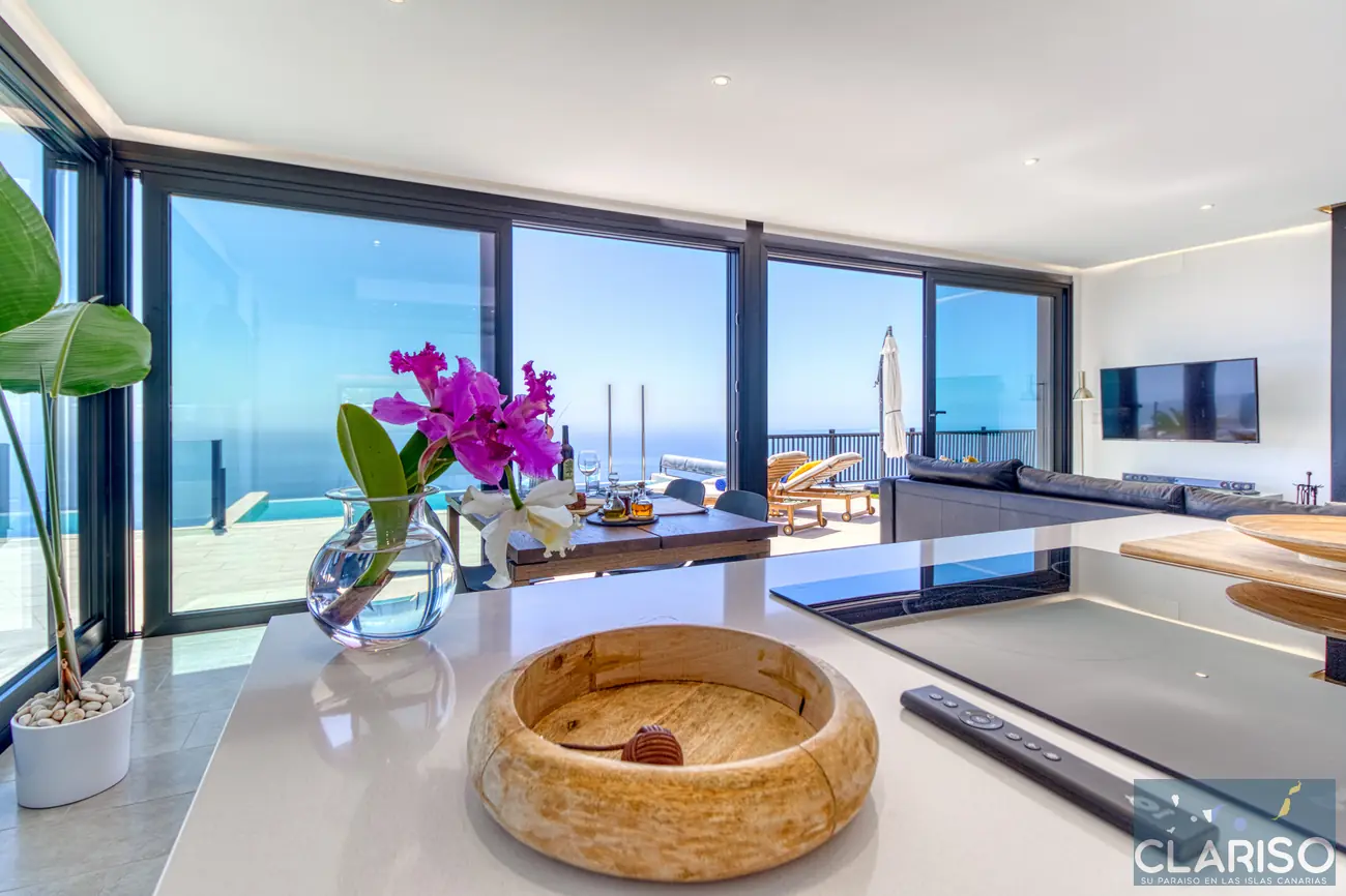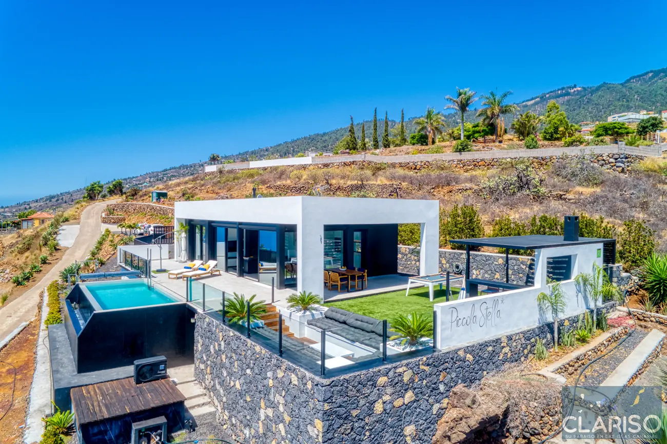 Villa Piccola Stella ligt op ongeveer 530 m hoogte in een absolute rustige omgeving boven de westkust van Tijarafe – langs de schilderachtige route naar de legendarische piratenbaai Porís de Candelaria. De moderne Bauhaus-architectuur versmelt hier op harmonieuze wijze met een smaakvol vormgegeven buitenruimte, een verwarmd infinity-zwembad en een spectaculair panoramisch uitzicht over de Atlantische Oceaan – een toevluchtsoord dat evenzeer indruk maakt door design, comfort en natuur.