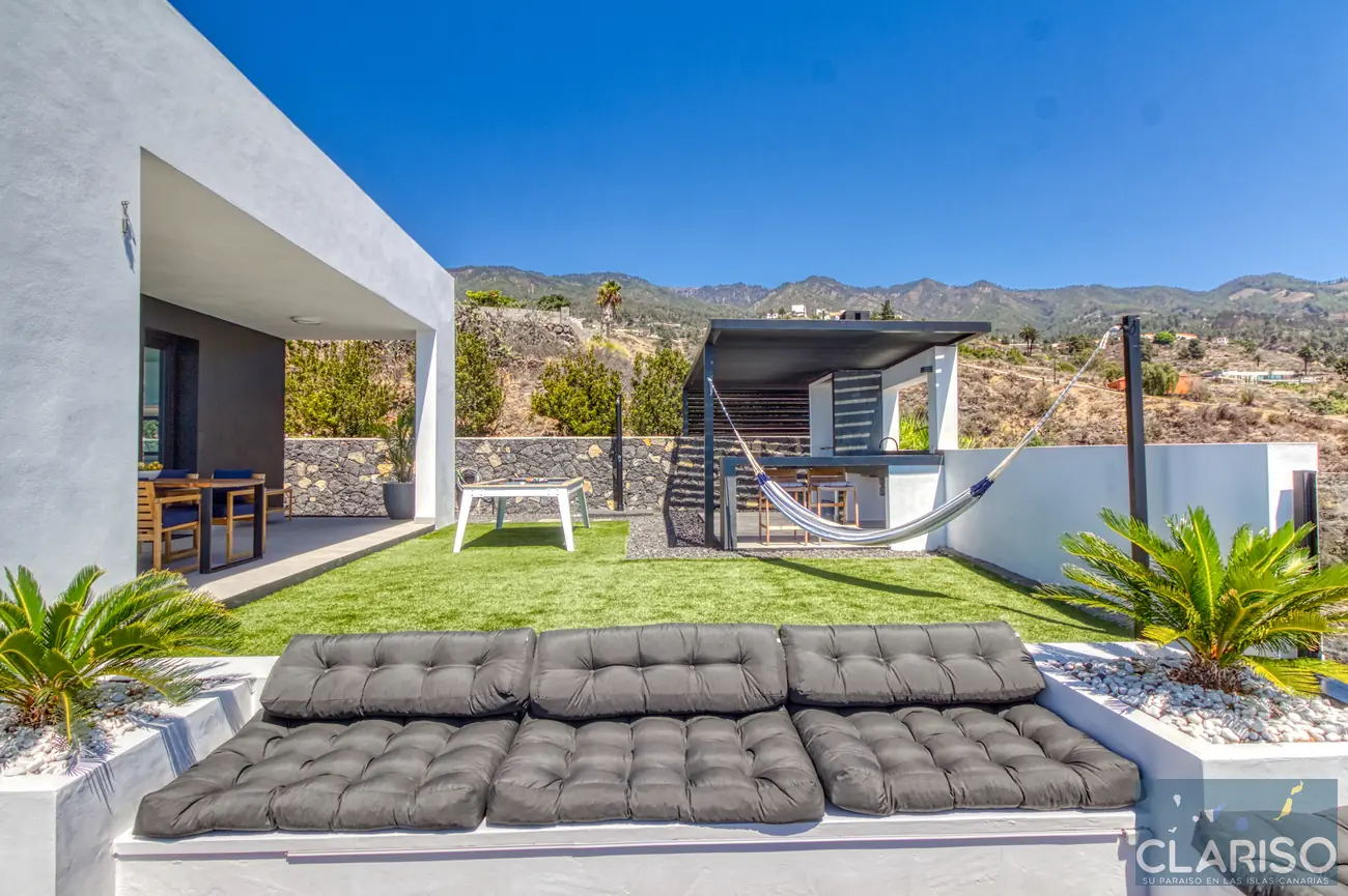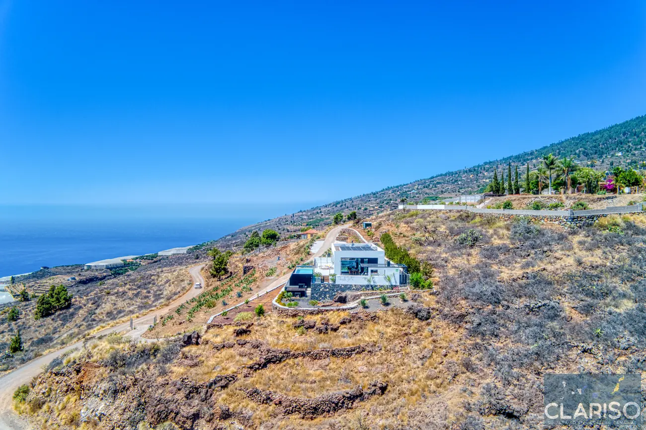 De villa ligt op een volledig rustige locatie op ongeveer 530 m hoogte in de heuvels van Tijarafe, met slechts enkele buren in de verte. Hier geniet u van maximale privacy en volledige rust.